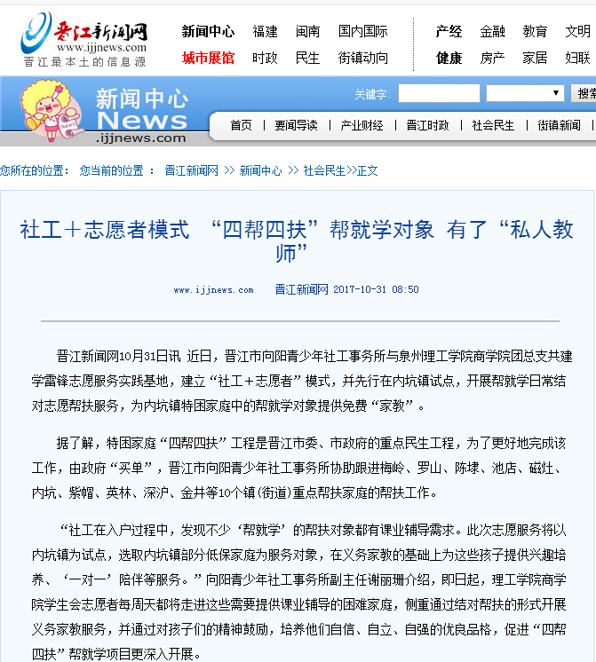 2017年11月08日晋江经济报官方微信号 媒体链接:https://mp.weixin.qq.com/s/pT5-TJCtitl3EAN23zxFSQ