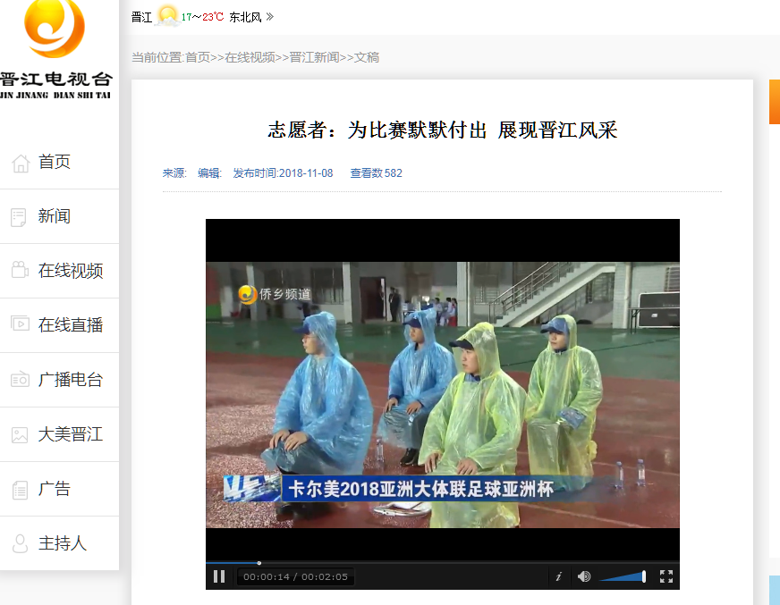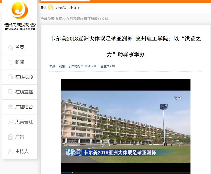 泉州理工学院新球场 卡尔美2018亚洲大体联足球亚洲杯正如火如荼地展开,随着赛事的深入,晋江不断向世界展现着自己的魅力。本次赛事在组织、食宿、医疗、安保等各个方面备受各国家及地区代表队好评,这是...