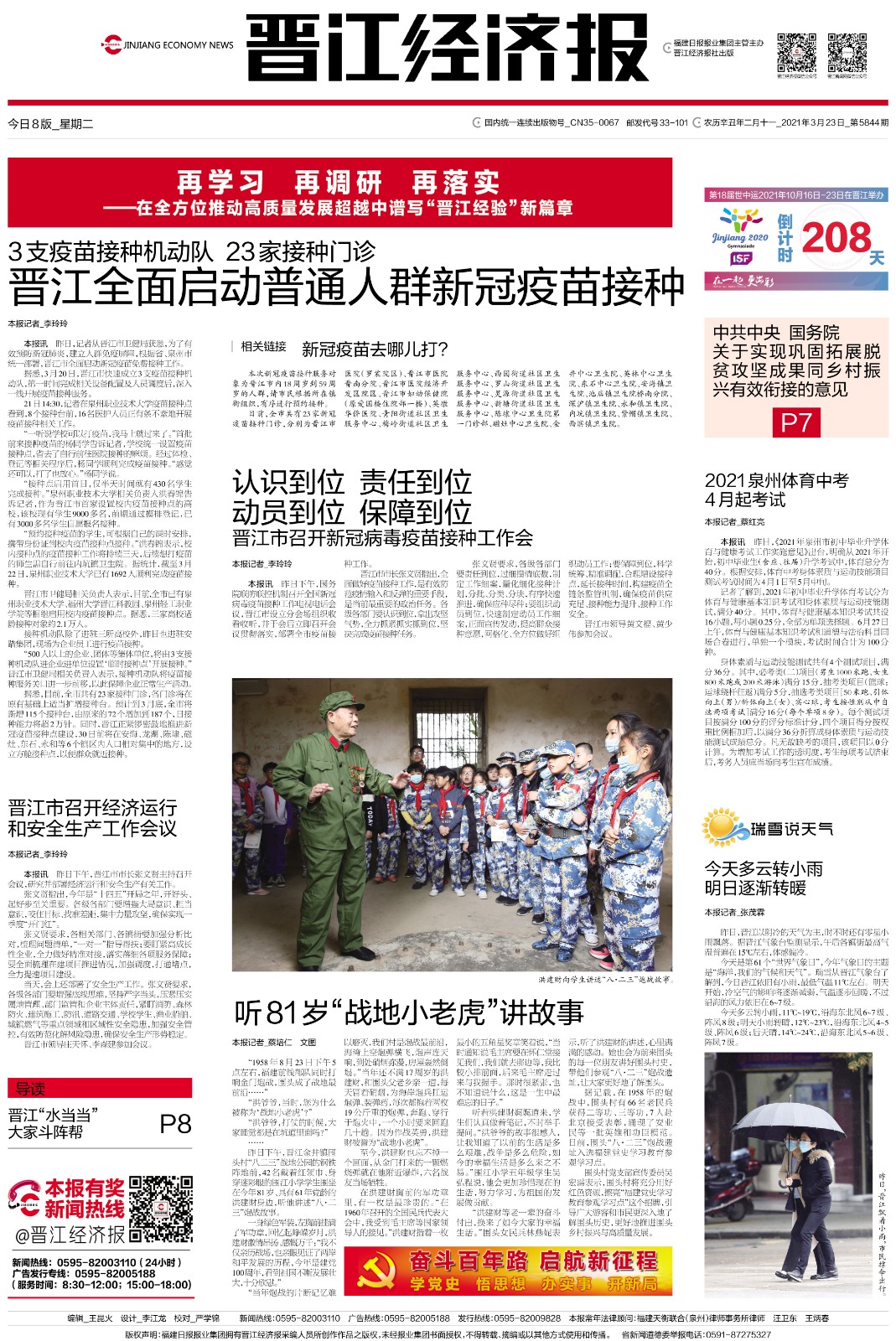 【晋江经济报】晋江全面启动普通人群新冠疫苗接种
