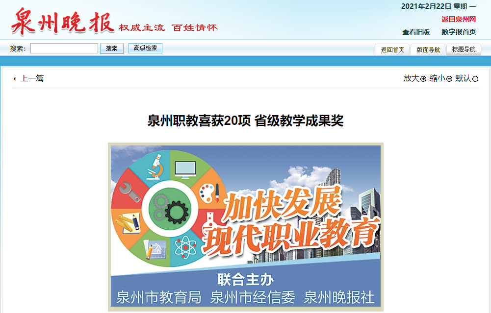 【泉州晚报】泉州职教喜获20项省级教学成果奖