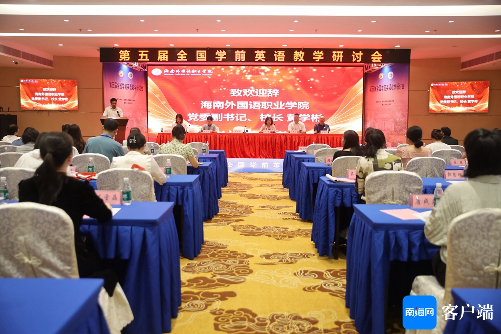 南海网5月25日消息(记者 吴岳文)5月25日,第五届全国学前英语教学研讨会在美丽的航天之城——海南文昌举办。研讨会现场。记者 王威 摄此次研讨会由海南外国语职业学院联合复旦大学出版社主办,围绕学前教育双语教学的主题,共同探索有效的高职学前教育专业双语教师的培养模式和评价体系,探讨学前教育双语方向的培养目标与规格,加强各地区、各学校之间的交流与合作,推动学前教育专业双语教学的创新与发展。海南外国语职业学...