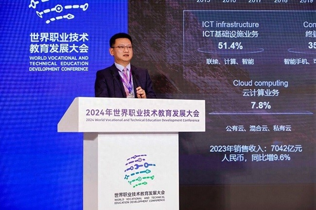 11月20~22日,主题为“创新赋能未来技能塑造人生”的2024年世界职业技术教育发展大会(以下简称:2024世界职教大会)在天津盛大召开,本次大会吸引了来自全球100多个国家和地区的1200多位代表参会,其中部长级外宾40多位。同期举办的2024世界职教大会专题展,也全面展现了我国职业教育在服务产业升级、推动国际交流合作方面的亮点。华为副总裁、公共事业军团总裁 李俊风在此次大会上,华为副总裁、公共事业军团总裁李俊风在论坛...