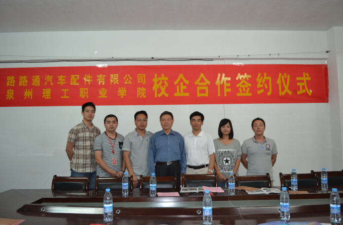 2013 年10月17日下午15:00在4号书院170会议室,车辆系与路路通汽车配件有限公司签订了校企合作协议。 路路通汽车配件有限公司蔡经理一行三人到访我校,我校车辆系陈其生书记、喻子建主任、吴茶水副书记、吴...