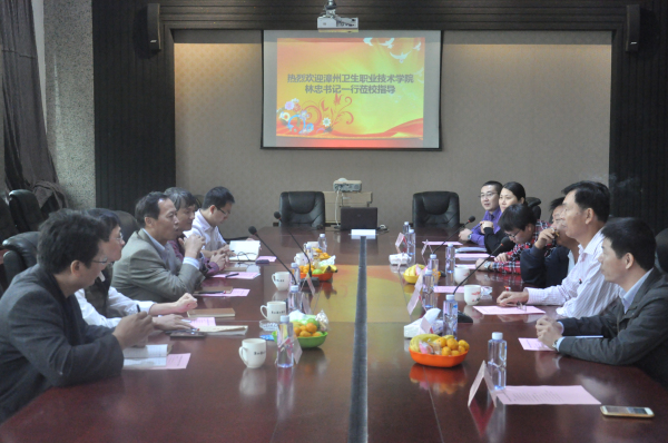 林忠书记与我校领导举行座谈交流会 林忠书记参观我校科研成果展 11月8日,漳州卫生职业技术学院党委书记林忠一行,就高校的发展与建设到我校进行交流与探讨。 上午9时,林忠书...
