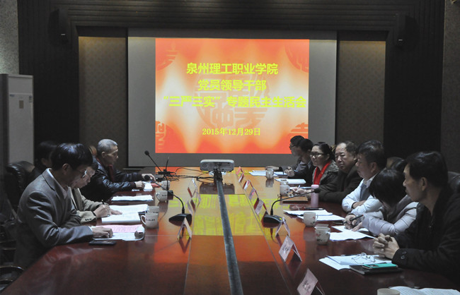 林其天书记代表领导班子进行对照检查 陈进兴书记进行点评指导 根据中共泉州市委教育工委《关于开好“三严三实”专题民主生活会的通知》要求,经过近半个月的准备, 12 月 29 日上午 9:00 ,我...