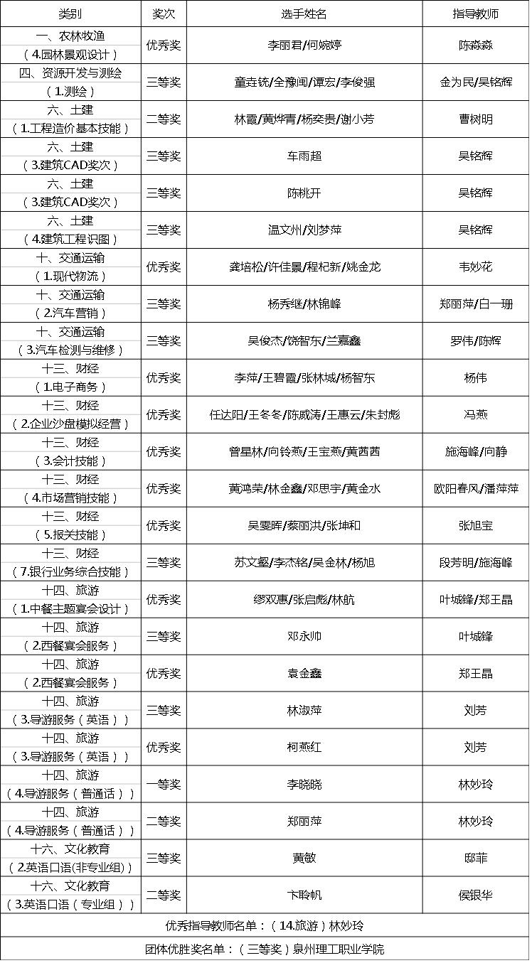 由省教育厅、人社厅、农业厅、卫计委、总工会、团省委、省中华职教社共同举办的2017年度福建省职业院校技能大赛于4月25日圆满结束。本次大赛共设133个竞赛项目(其中高职67个,中职66个),全省有24支中职代表队和56...