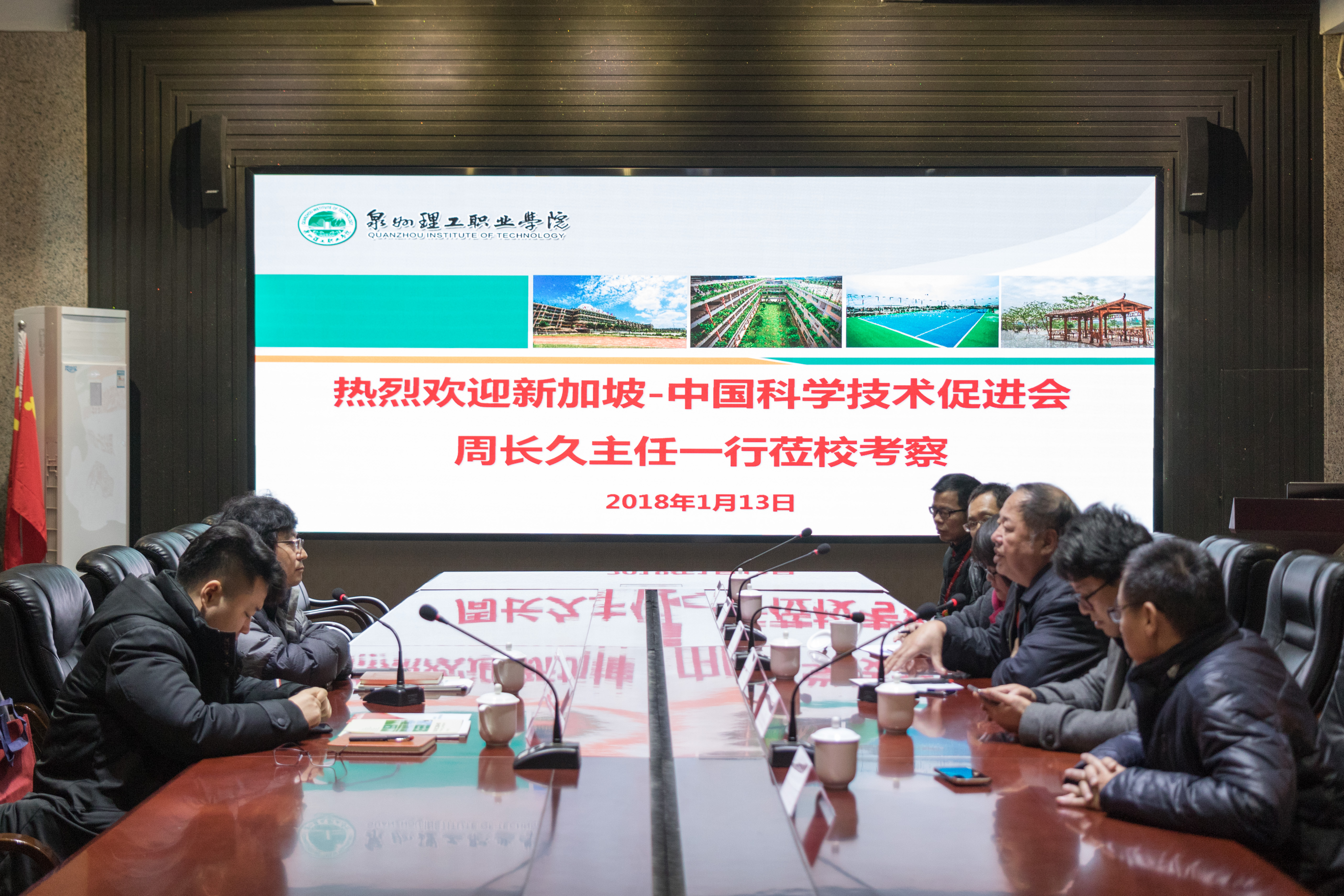 1月13日,新加坡--中国科学技术促进会周长久主任一行来校参观交流。我校校长臧树良、副校长吴滨如、校长助理郭霏霏等陪同交流。一行人首先参观了校史馆、数字媒体中心、绿色建筑展厅、智能制造中心等地,了解我校办学...