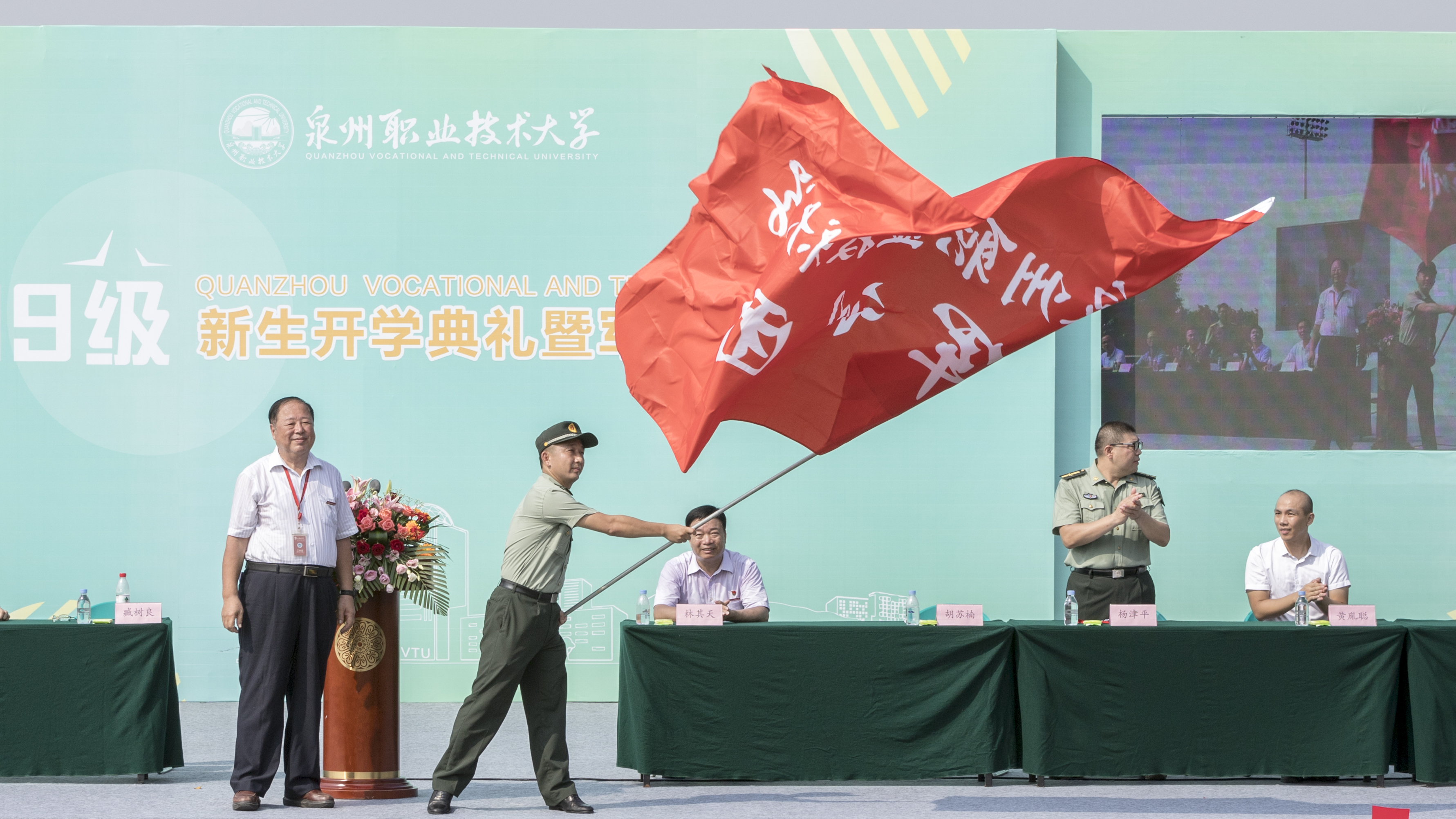 金色九月清风送爽,硕果飘香。9月9日我校2019级新生开学典礼暨军训动员大会在田径运动场隆重举行。学校创办人/董事长吴金营、校长臧树良、校党委书记林其天、学校教育基金会理事长杨培琛、学校副董事长吴璐吟、学校实训基地副总经理张文协、校党委委员/副校长庄文瑞、副校长姚丹、副校长郭霏霏、副校长蔡金佩、校党委委员/副校长林文艺、一级职业指导师校党委委员/工会主席陈其生、校党委委员/人事处处长钱玉琴、校务顾问翁长武...