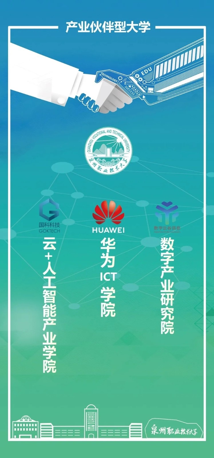 我校与华为技术有限公司联合成立“华为ICT学院”、与福建国科信息科技有限公司联合成立“云+人工智能产业学院”、与泉州市数字云谷信息产业发展有限公司联合成立“数字产业研究院”。 9月2日下午,我校...