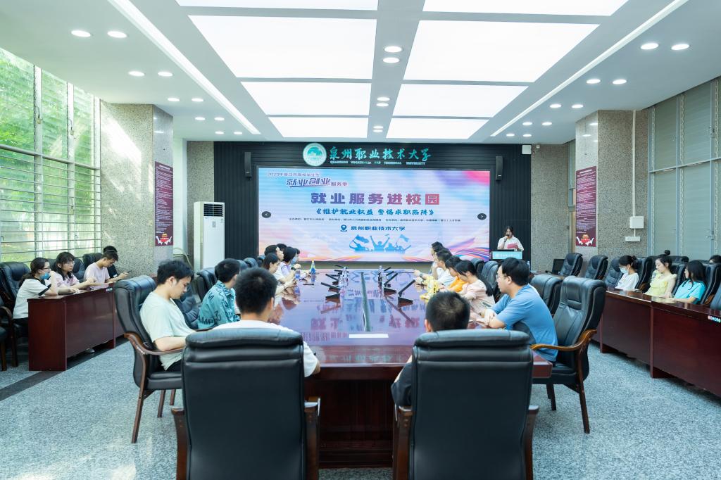 6月7日下午,2023年晋江高校毕业生就业创业服务季泉州职业技术大学专场就业指导讲座在第一会议室举办。本次讲座由晋江市人民政府主办,晋江市人力资源和社会保障局承办,泉州市高教发展中心、泉州职业技术大学、中国海峡(晋江)人才市场共同协办。本次讲座分为两个部分。第一部分由特邀嘉宾福建华达(晋江)律师事务所主任蔡庆荣律师以《维护就业权益 警惕求职陷阱》为主题进行普法宣讲;第二部分由我校2023届优秀毕业生邱津芳...