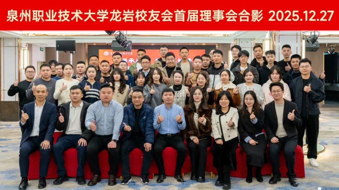 12月27日,泉州职业技术大学龙岩校友会成立大会在龙岩市新罗区召开。学校党委副书记、副校长、校友总会理事长蔡金佩,学生工作处副处长、校友总会秘书长朱冰梅,校团委书记、学生工作处副处长、校友总会副秘书长黄胤聪,招生办主任、校友总会监事黄世强以及在龙岩的校友们共同出席本次大会,会议由校友总会秘书林倪主持。会议伊始,校友们通过学校宣传片,直观领略母校近年的发展成就。画面中熟悉的校园景致、鲜活的教学片段,...