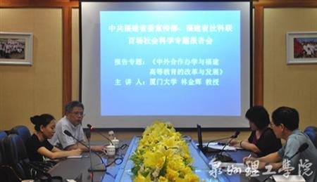 10 月11日 上午,厦门大学林金辉教授应泉州理工学院邀请,赴泉前来作题为“中外合作办学与福建高等教育的改革与发展”的专题报告,校领导、部分教职工前往参加。 报告会上,林教授就教育国际化的趋势、主...