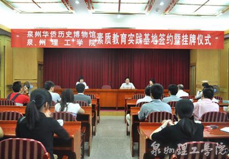 10月10日上午9点30分,泉州理工学院与华侨历史博物馆共建素质教育实践基地签约暨揭牌仪式在博物馆隆重举行。泉州理工学院苏志明名誉院长和博物馆吴翠蓉馆长分别代表双方签订共建协议书,并进行“泉州理工学院素质教育...