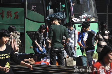 3月9日,在泉州理工学院泉州校区,一辆辆大货车满载着行李缓缓驶出校园,一批批男女学生或背或扛着大包小包,往货车上装行李,这是新学期泉州理工学院搬迁前往晋江新校区的一幕。 泉州理工职业学院新校区,位...