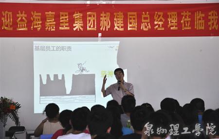 6月26日下午,世界五百强丰益国际益海嘉里集团总经理郝建国先生应邀走进泉州理工学院,在教学楼238教室为300余名大一大二学生带来了一场题为《大学生就业指导》的精彩专题报告会。 报告会前,我校校长代表学校...