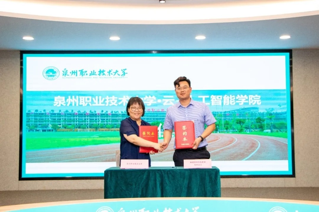 泉州是“中国制造2025”试点示范城市、国家首批产教融合试点城市。随着5G时代的来临与发展,我校主动融入区域经济发展,为实现数字福建的发展目标,培养适应大数据、人工智能发展需求的高层次技术技能型人才。校企双方在签约仪式上就深度合作、人才培养等方面进行交流。