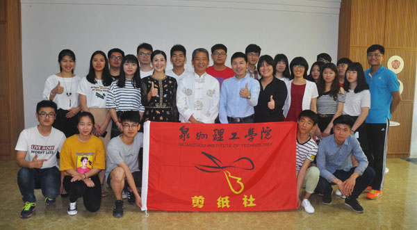 5月4日下午,我校更是成立了剪纸社社团。这次剪纸社的成立,是由学校建筑系曾芳芳老师发起的,她是漳浦县剪纸项目非遗传承人,还是中国传统工艺(剪纸)大赛“达人奖”、民间剪纸艺术职业技能竞赛“铜刀剪”得主。本次成立仪式有幸邀请到泉州非遗剪纸传承人、晋江剪纸协会名誉会长杨民兴,漳州市非遗剪纸传承人、漳浦县民间剪纸协会副秘书长卢淑蓉,晋江市剪纸协会长陈金矿,晋江市剪纸协会理事柯素清等剪纸界的大咖莅临现场,并由校长助理蔡金佩副研究员为他们颁发剪纸社顾问、指导老师聘书。