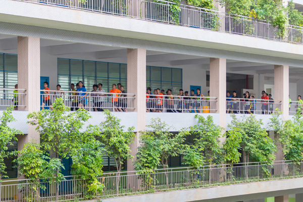 原来,爱跑步的董事长吴金营,在校园建设时,特地把学校的所有楼栋连接起来,既遮阳又避雨。特别是教学楼的环绕走廊有6米宽,一层楼一圈下来就有1公里左右,6层楼上下就有12公里,不仅能够行车,而且还是师生们风雨运动场。同时,墙体建设时,泉理工还很注重环保,施工过程中,所有建筑废渣经二次加工后全部作为施工材料,实现绿色施工。“每一层楼的跑道上,都种满美丽的绿色植物,在这里空中跑道上赛跑,真的很享受。”汤幼文说得很开心。