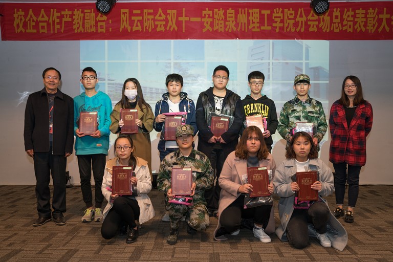 今年“双十一”期间,485名泉州理工学院商学院学生变身做起了“店小二”, 助力安踏集团,取得优异成绩。昨日(28日),风云际会“双十一”——安踏集团、泉州理 工学院职场体验总结表彰大会召开,这群可爱的“店小二”受到安踏集团及泉州理工学院的 表彰。
