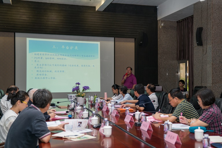 会议首先由校长臧树良教授作《院士专家工作站工作汇报》,臧校长从“顶层设计”、“环境营造”、“平台扩展”、“初步成效”四个方面,对工作站成立以来工作进展进行汇总。臧树良校长说,今天是院士专家工作站成立130天整,在大家的努力上,工作站的发展,取得了很大的进展,而且在工作站的基础上,学校又获批了福建省高等职院校(首批)应用技术协同创新中心,并且申报了福建省工程技术研究中心,另外,学校的创新能力越来越强。他举例,近期学校在全国BIM算量大赛上获得两个冠军,成绩喜人。