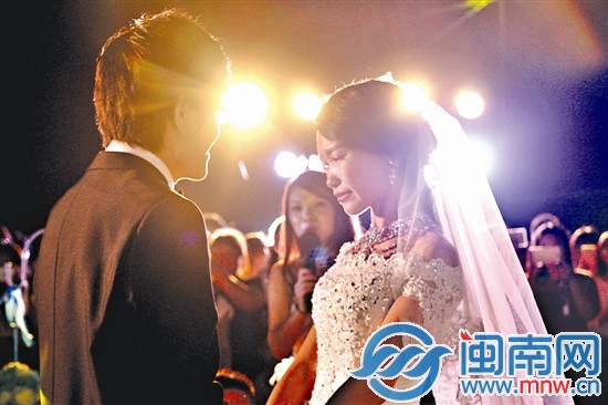 海都讯 泳池畔,风轻扬,杜振亮和林端端的结婚照片串满一整面墙,在10月10日这个被称为“十全十美”的秋日夜晚,泉州理工学院的食堂顶楼,夜风舒适,柔和的舞台灯将精心布置的结婚party衬托得格外氤氲。