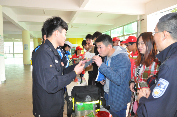 在宣传酒驾危害时,民警利用啤酒、藿香正气水以及含有酒精成分的蛋糕物品,让我校师生现场演示。我校师生在饮食含有酒精的物品后,民警通过酒精测量仪对其进行现场酒精浓度测量,测量仪立即显示酒精含量。
