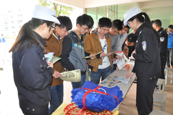 在宣传活动上,内坑交警中队民警为我校师生派送印有道路交通知识的宣传单,并在学校设置道路交通知识宣传栏,为我校师生生动形象地讲解了道路交通安全知识。