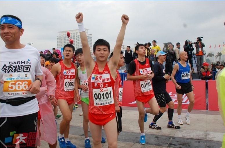 由我校教师与学生组成的50多名选手参加了此次比赛,张亮老师跑出2小时58分的成绩,徐远山老师跑出306分的成绩,在海峡两岸城市马拉松邀请赛(以下简称“两岸城市赛”)中,我校获得团体第6名与团体28名的成绩。