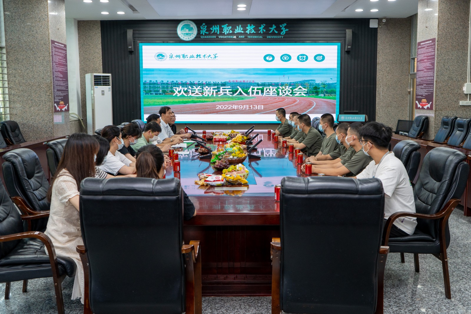 金秋九月锣鼓响,热血儿郎从军去。又是一年征兵季,又是一年送兵时。9月13日上午,我校在第一会议室举行2022年欢送新兵入伍座谈会,为即将走进军营的7名同学举办新兵入伍座谈会。校党委书记傅志雄、党委副书记/副校长蔡金佩、副校长庄文瑞、武装部部长杨津平、征兵工作站黄英文及相关辅导员参加座谈会。