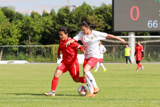 烈日下,双方的球员都大汗淋漓,但却没有一个人停下奔跑的脚步,队员们像草原上一匹匹脱缰的野马,为自己的梦想奔跑,来自海南女乙的17号球员王慧敏接二连三的进球,成为了本场比赛的焦点。