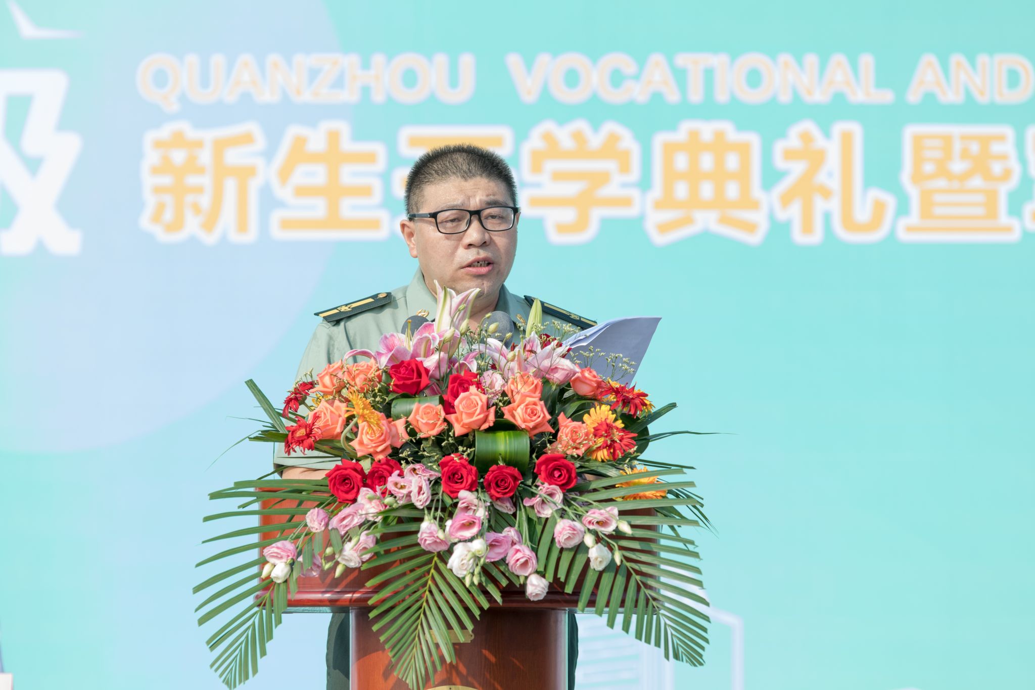 晋江市武装部副部长胡苏楠做军训动员讲话