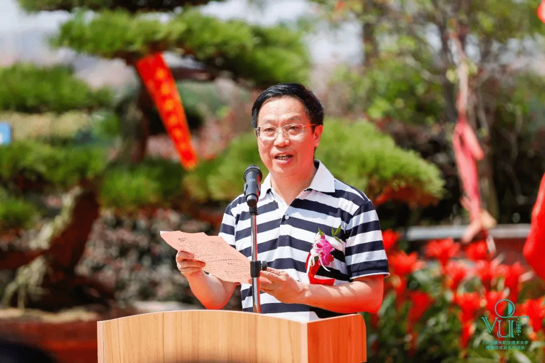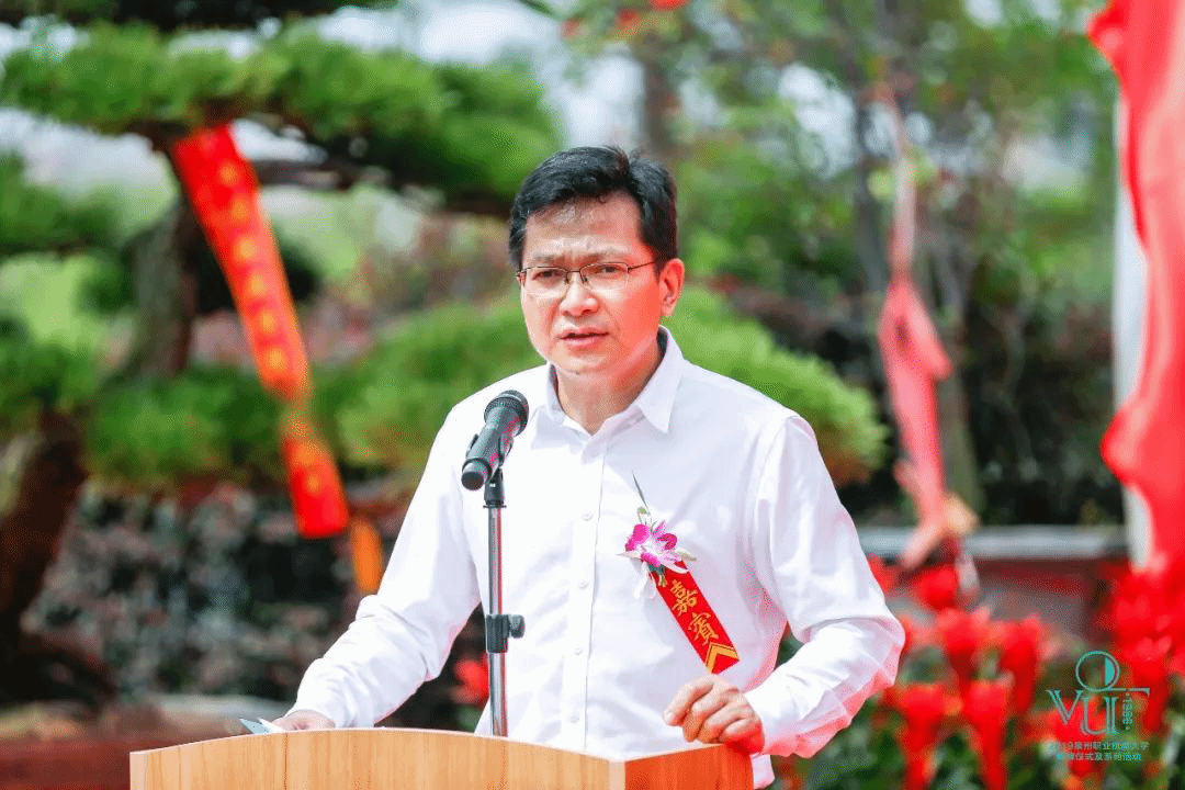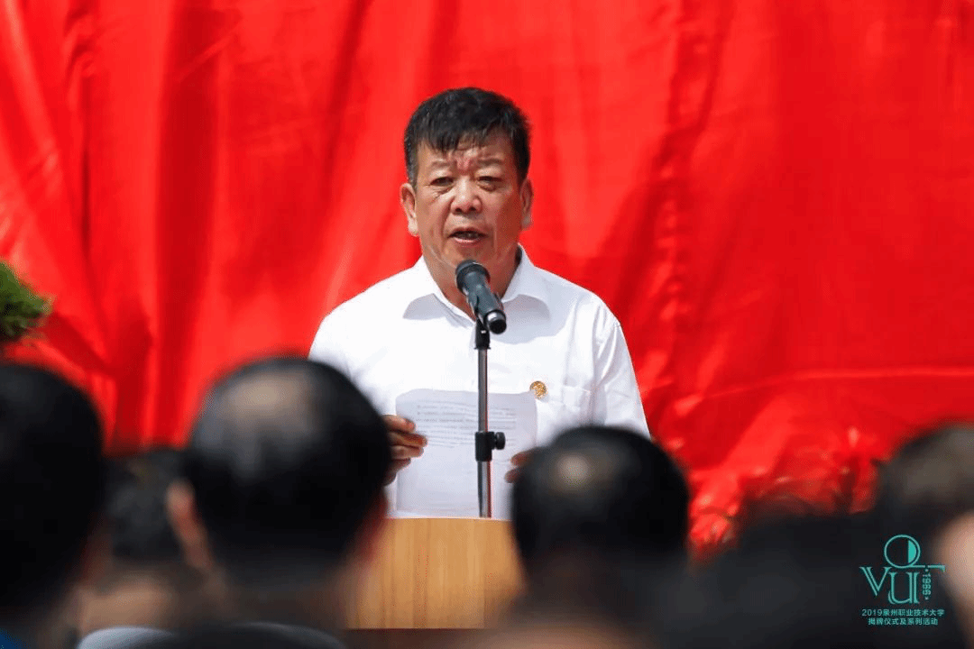 晋江市人民政府黄少伟副市长讲话,他代表晋江市委市政府对泉州职业技术大学的成立表示热烈祝贺。学校辛勤耕耘33年,培养具有晋江基因的创业型人才和社会急需的高层次专业技术技能人才,深受社会欢迎。希望学校认真贯彻落实各级部门关于职业教育的新部署和新要求,不忘初心,牢记使命,切实发挥本科层次职业教育试点学校的引领和示范作用,为泉州、晋江经济社会发展做出更大贡献。