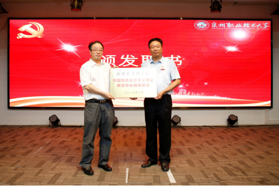 刘小新为马克思主义学院授牌“福建社会科学院—中国特色社会主义理论研究中心调研基地”和“福建社会科学院—舆情研究基地”。