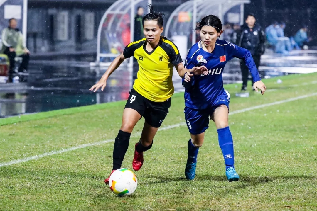 11月1日晚,2018亚洲大体联足球亚洲杯女子组小组赛首日,东华大学队(中国)对阵亚洲学者大学队(泰国)的比赛在泉州理工学院足球场进行。