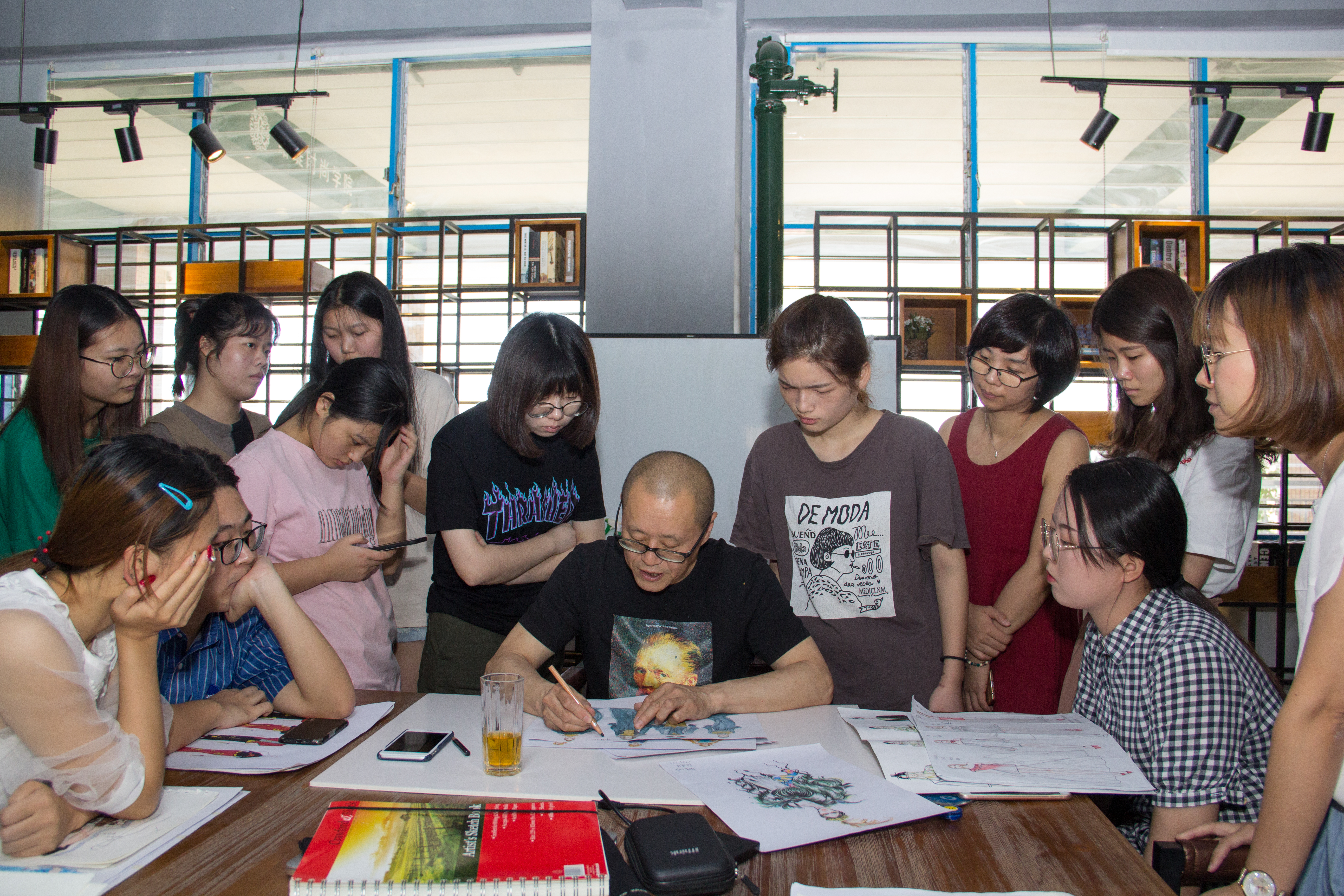 此次讲堂不仅有针对学院全体学生的大班课程,还有针对性的小班提高班教学。“陈闻教授不仅给我们讲了很多关于专业的经历和心得,还在课堂上直接作画给我们看,手把手教我们画技法,平时不会注意到的细节部分都懂得如何制作。”17级服设卓雪妹在听完讲堂后表示收获颇丰,“希望以后可以多开展讲堂,多学习,提高自己的设计美感。”
