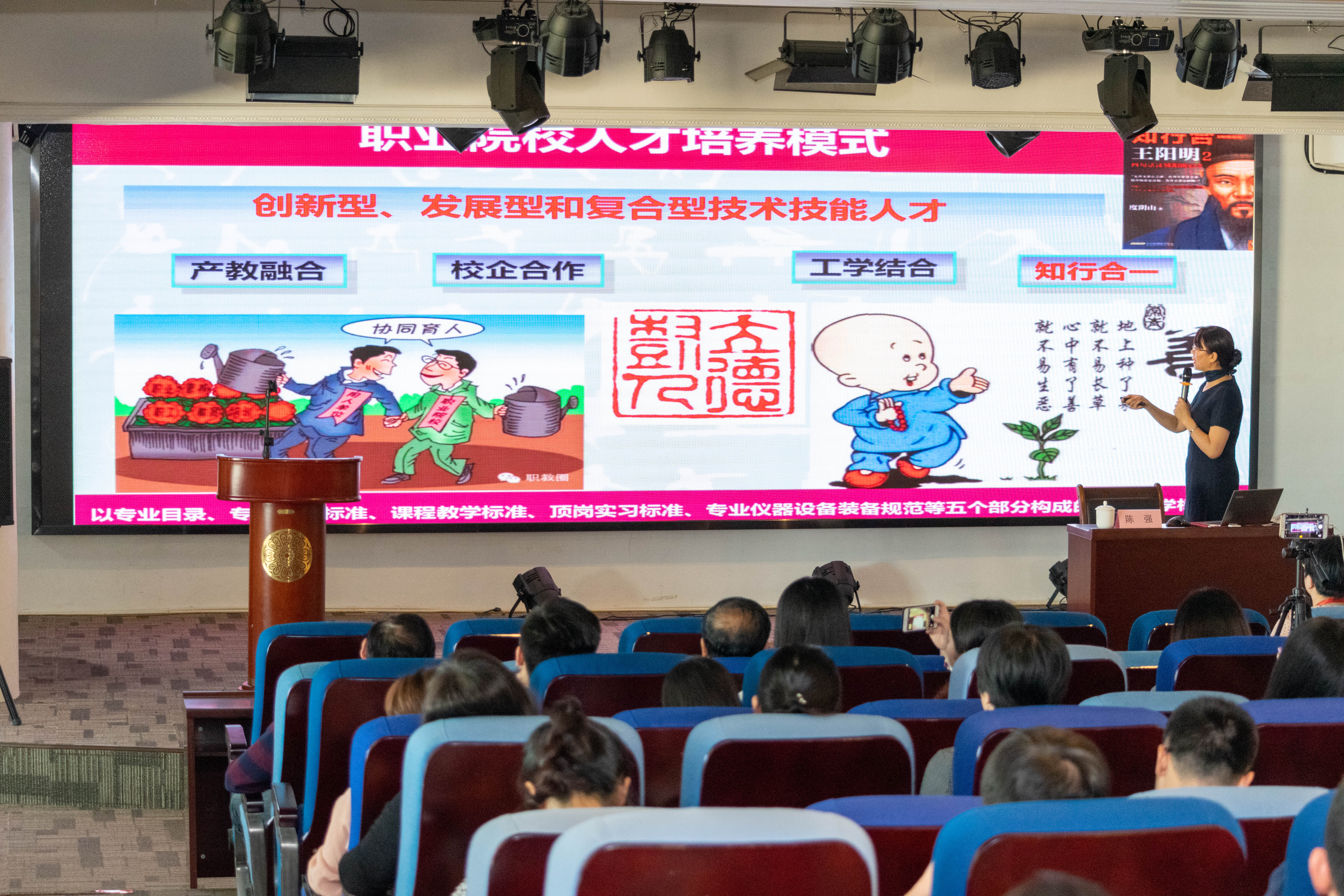 陈教授表示现在的时代为终身学习时代,要为不可预测的将来培养健康成长的学生,实现网络化、数字化、个性化、终身化的教育,教育主导、技术融合,要求教师要不断学习教育部等相关指导文件,领会相关政策。职业院校人才培养模式为培养创新型、发展型和复合型技术技能人才,具体培养方法需落实到产教融合、校企合作、工学结合、知行合一,协同育人、立德树人。在制定专业人才培养方案时,以立德树人为根本,培养学生的素质、知识和能力,再依据学生已有的知识背景、认知结构、学习特点和专业人才培养方案进行教学目标设定。