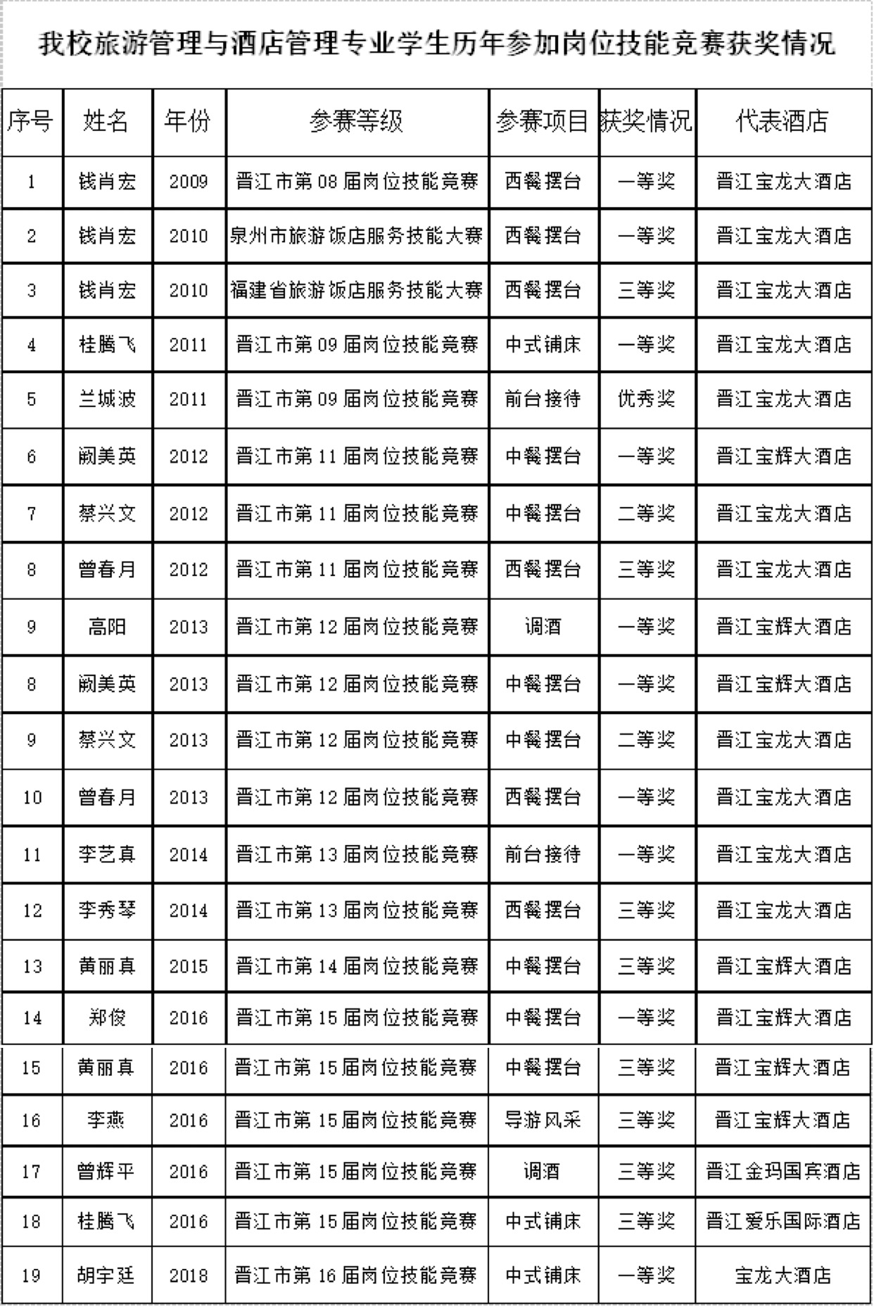 我校旅游管理与酒店管理专业发展也紧抓机遇,要求学生练本领、提技能、树形象、展风采,乘势而上。历年来有近20名学生代表酒店参加专项技能比赛,并获得优异成绩,同时获得企业的肯定与嘉奖。