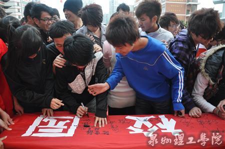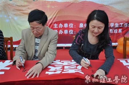 仪式最后,在“弘扬尊师,倡导爱生,共创温馨和谐校园”签名活动上,学院领导和全体师生在横幅上签名,表达了对弘扬“尊师爱生”这一传统美德的美好心愿和执着信念。