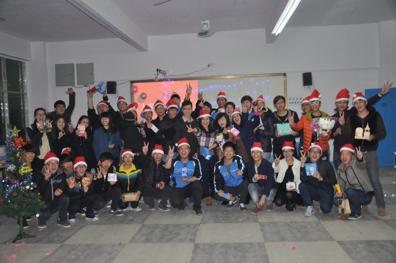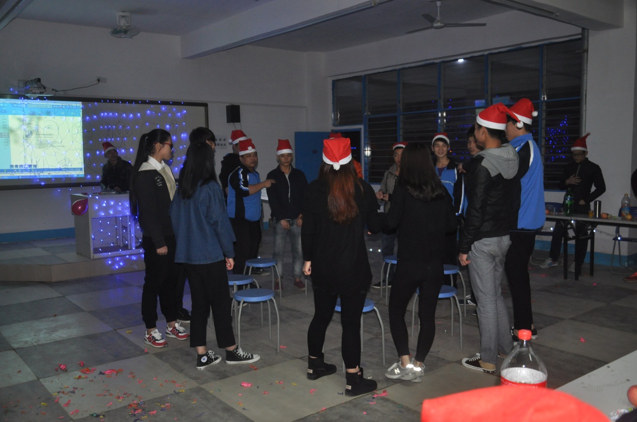 2014年12月23日19时,泉州理工学院355教室热闹极了,14级建设3班的同学们正在这边举行“庆圣诞迎新年”晚会。唱歌、跳舞、抽奖……一出出好玩的游戏正在上演着。同学们说,第一次在理工过圣诞,感觉很开心。