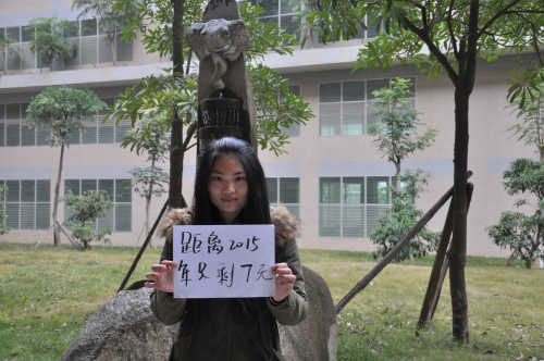 我叫何婉婷,是大学生记者团新闻部干事。2014年我们从相遇、相知到朋友,现如今记者团已占据我脑海的一部分。在那里我收获了友谊,得到了进步,我很开心将一直陪伴着记者团。距离2015年仅剩的7天,我们也将迎来新的一年,让我们携手共创记者团美好的明天。