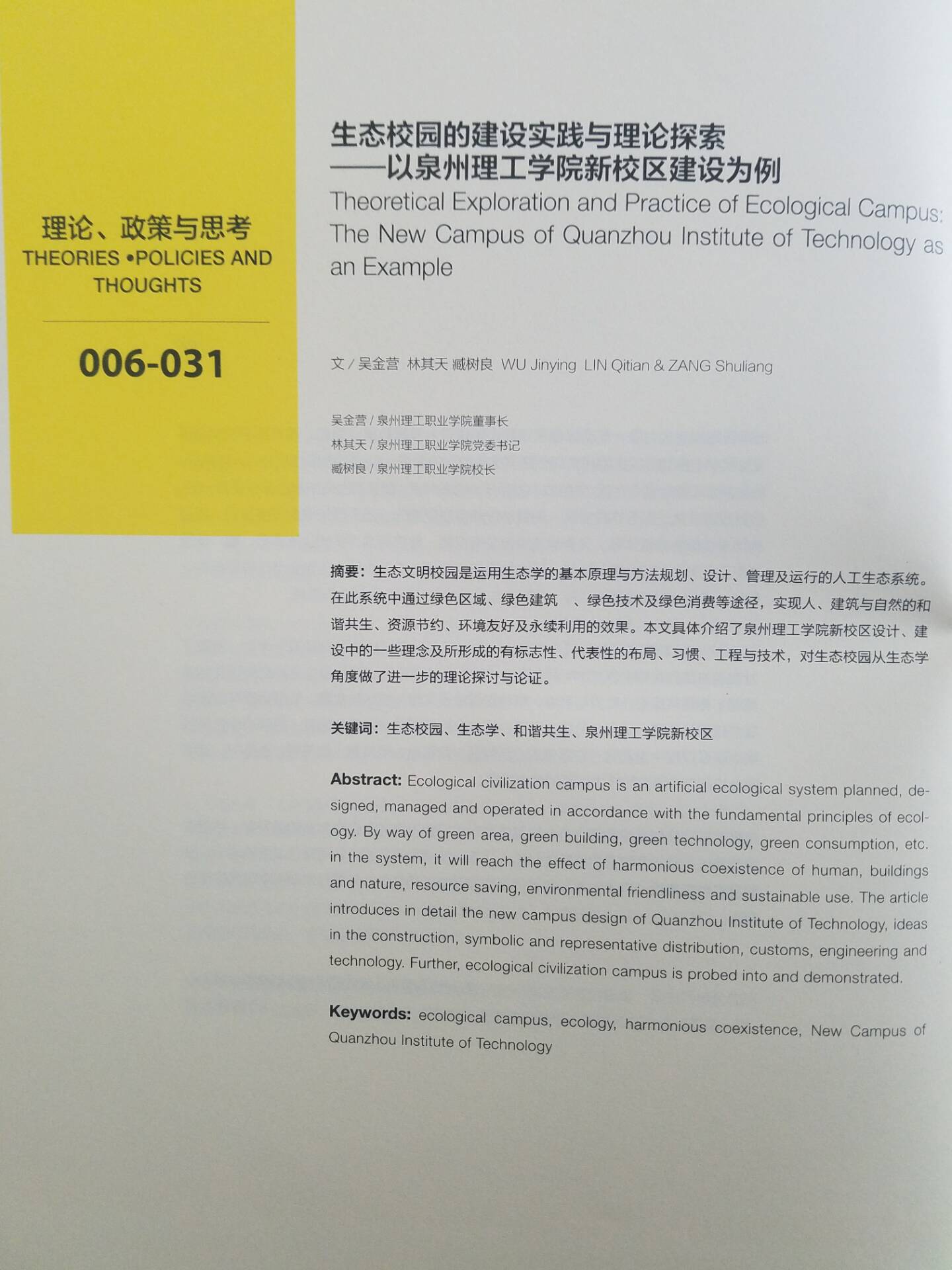 热烈祝贺我校生态校园建设的理论与实践探索工作再获认可!2018年01期的清华大学和中国建筑工业出版社联合主办的刊物《住区》“绿色校园建设专刊”,再次以首篇刊发了有关我校生态校园建设的探索文章。