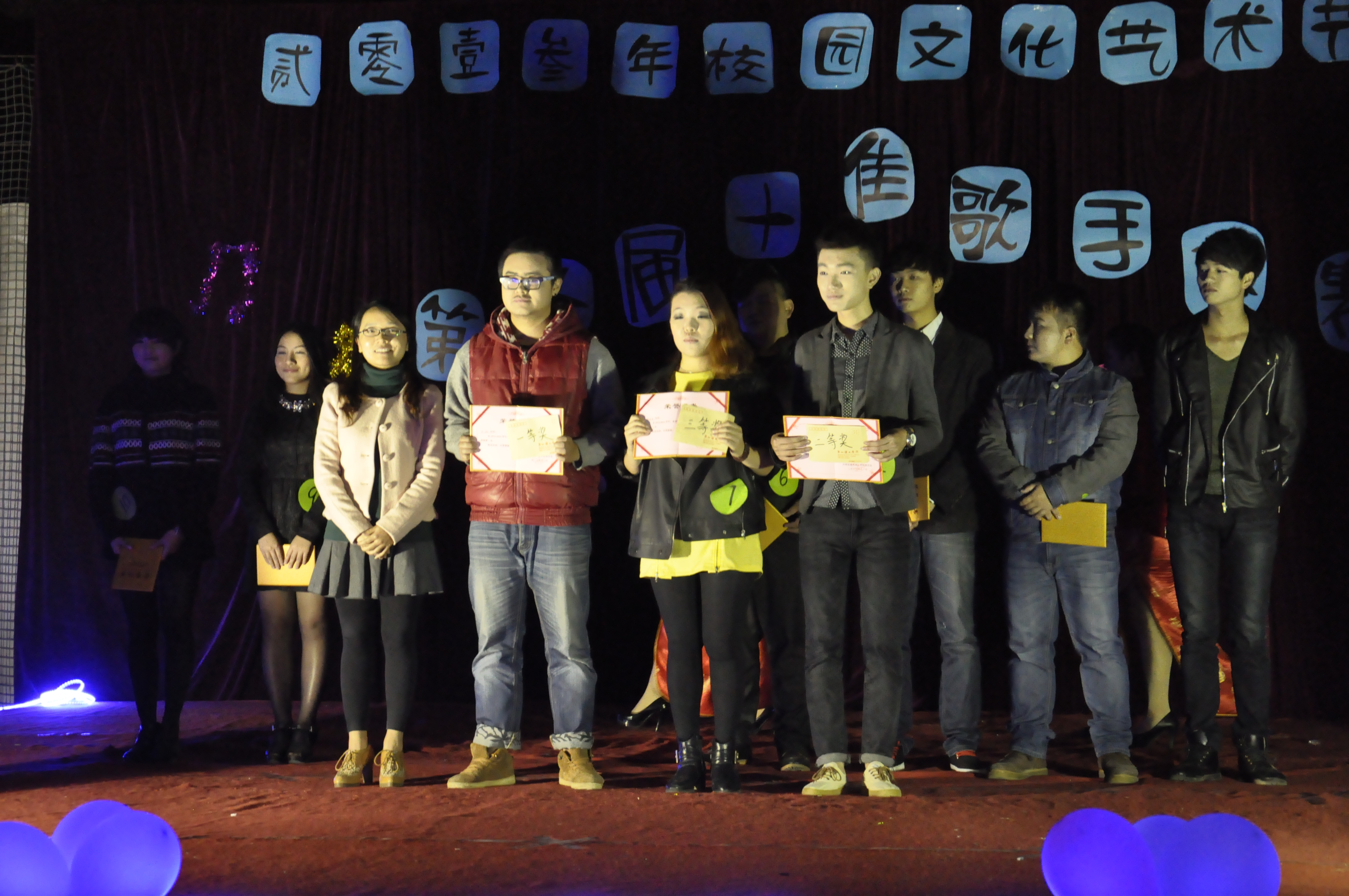 1120日晚,泉州理工学院网球场传出阵阵欢呼声。由校团委主办、校大学生艺术团、校学生会具体承办的“音为梦想•唱响理工”第十届校园十佳歌手赛总决赛2013年校园文化艺术节开幕式在此隆重举行。校党委副书记黄志梅、教务处处长金为民、党政办副主任于德强、学工处副处长杨津平、建筑系党总支副书记涂永坚、校团委副书记罗敏观看了比赛。