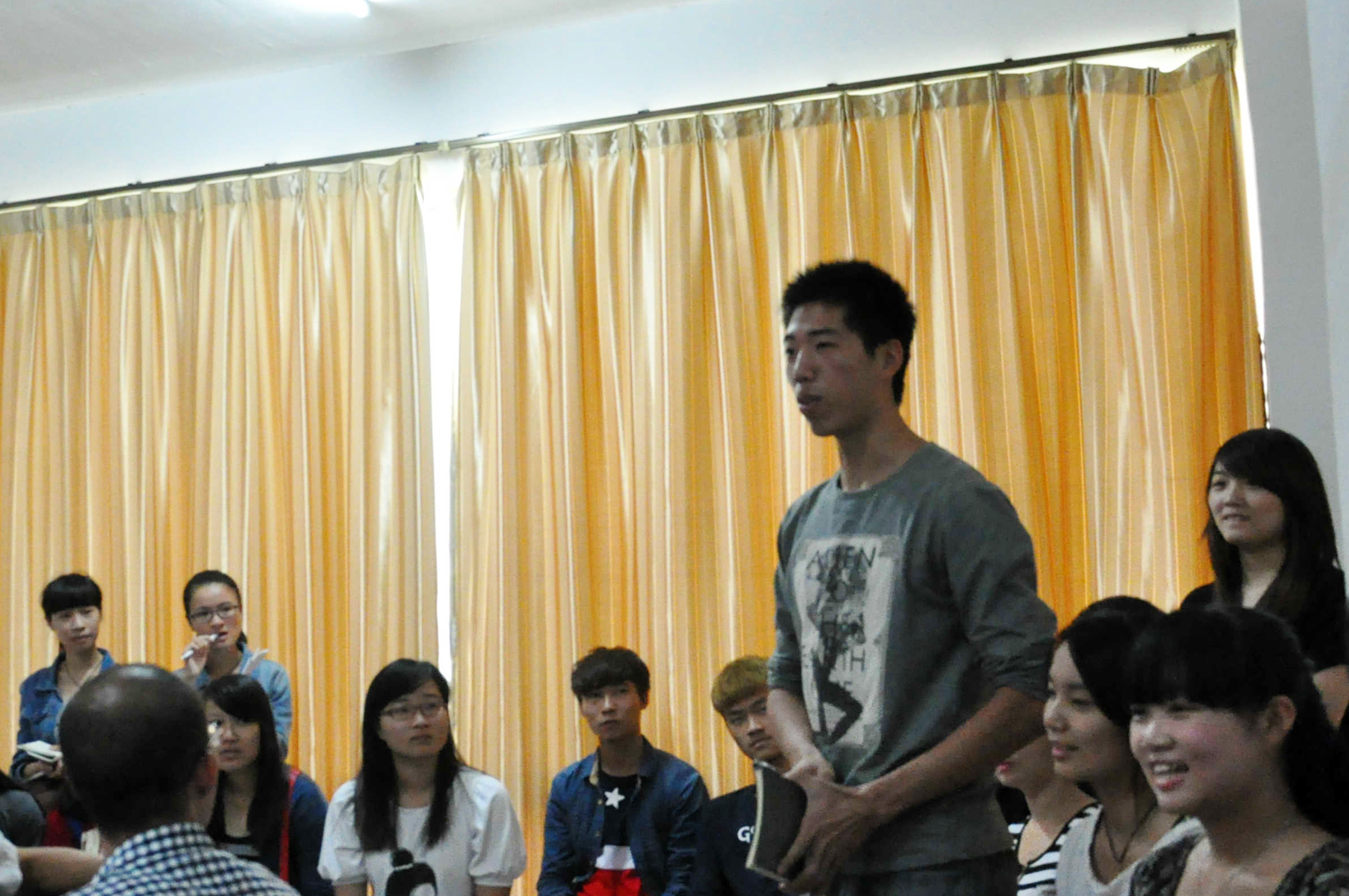 学生代表在座谈会上向校友发起提问
