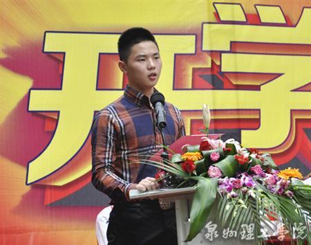 老生代表12级车辆系陈吓琼同学以“长风破浪会有时 直挂云帆济沧海”与新生共勉。新生代表13级建筑系王铭漳同学在发言中表达成为一名新理工人的喜悦,道出了对大学生活的期许。