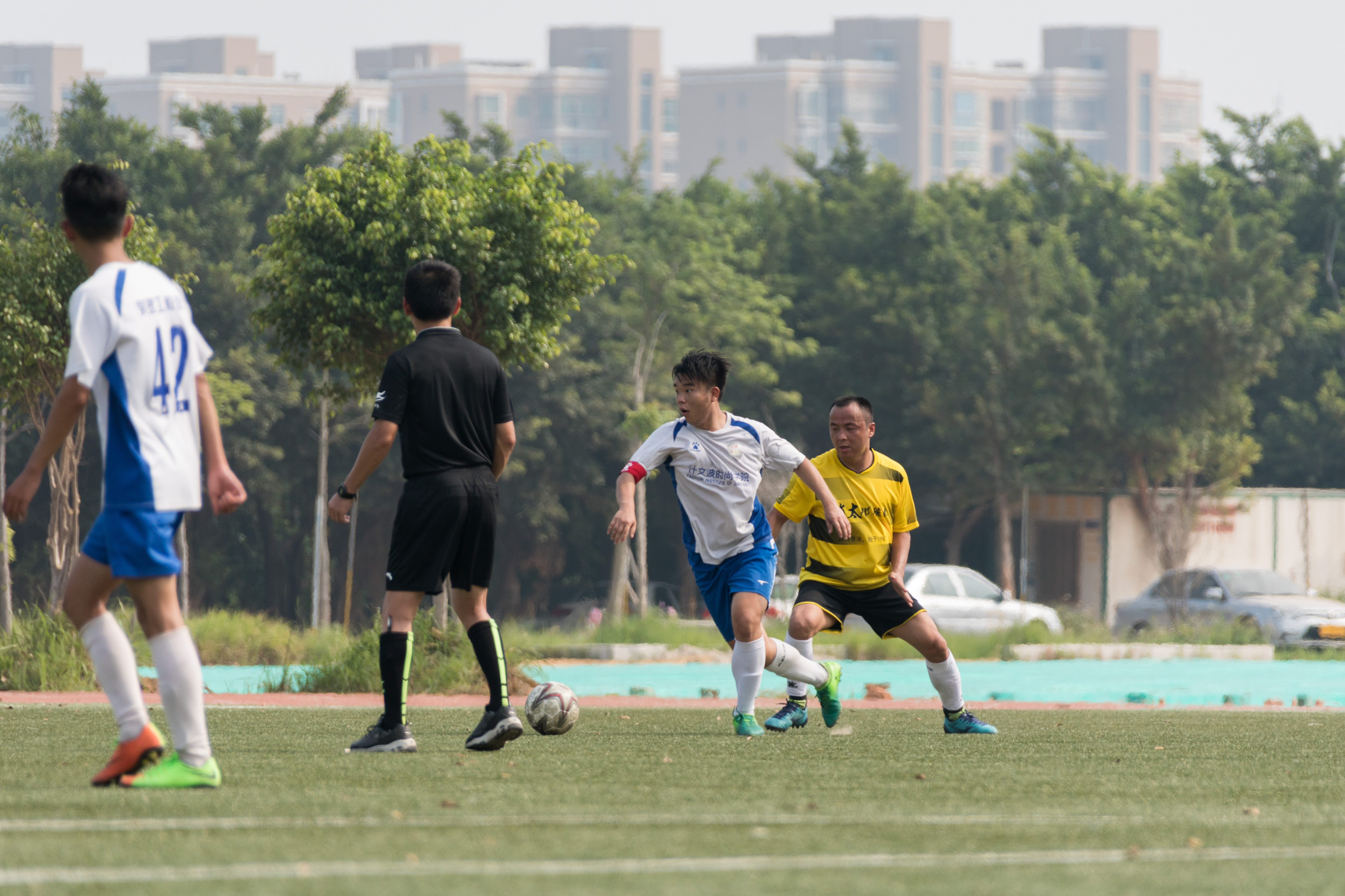 足球场上战局瞬息万变,当均衡的局势被打破,原本处于守势的建工不得不压出来进攻,而这种节奏正是年轻的泉理工校友所熟悉和喜欢的。自然而然的,下半场泉理工校友接管了比赛。