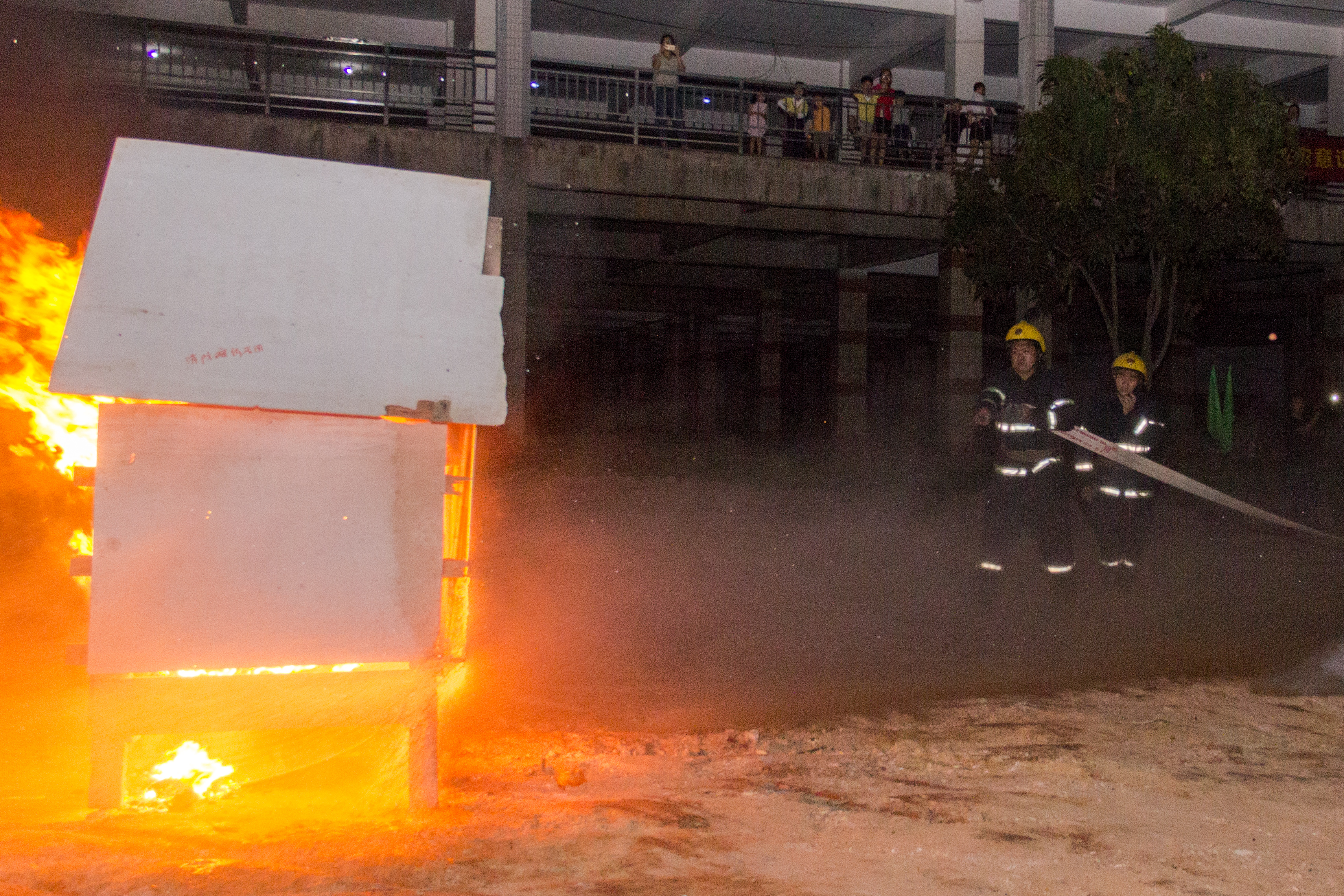 在近1小时的逼真模拟环境中,全体师生进行了地震、火灾背景下的疏散逃生演练与水带铺设演示、实地灭火等项目。消防官兵、医护人员快速反应,展示了侦查火情、利用消防设备实施灭火、紧急救治和转运伤员等应急救援行动。