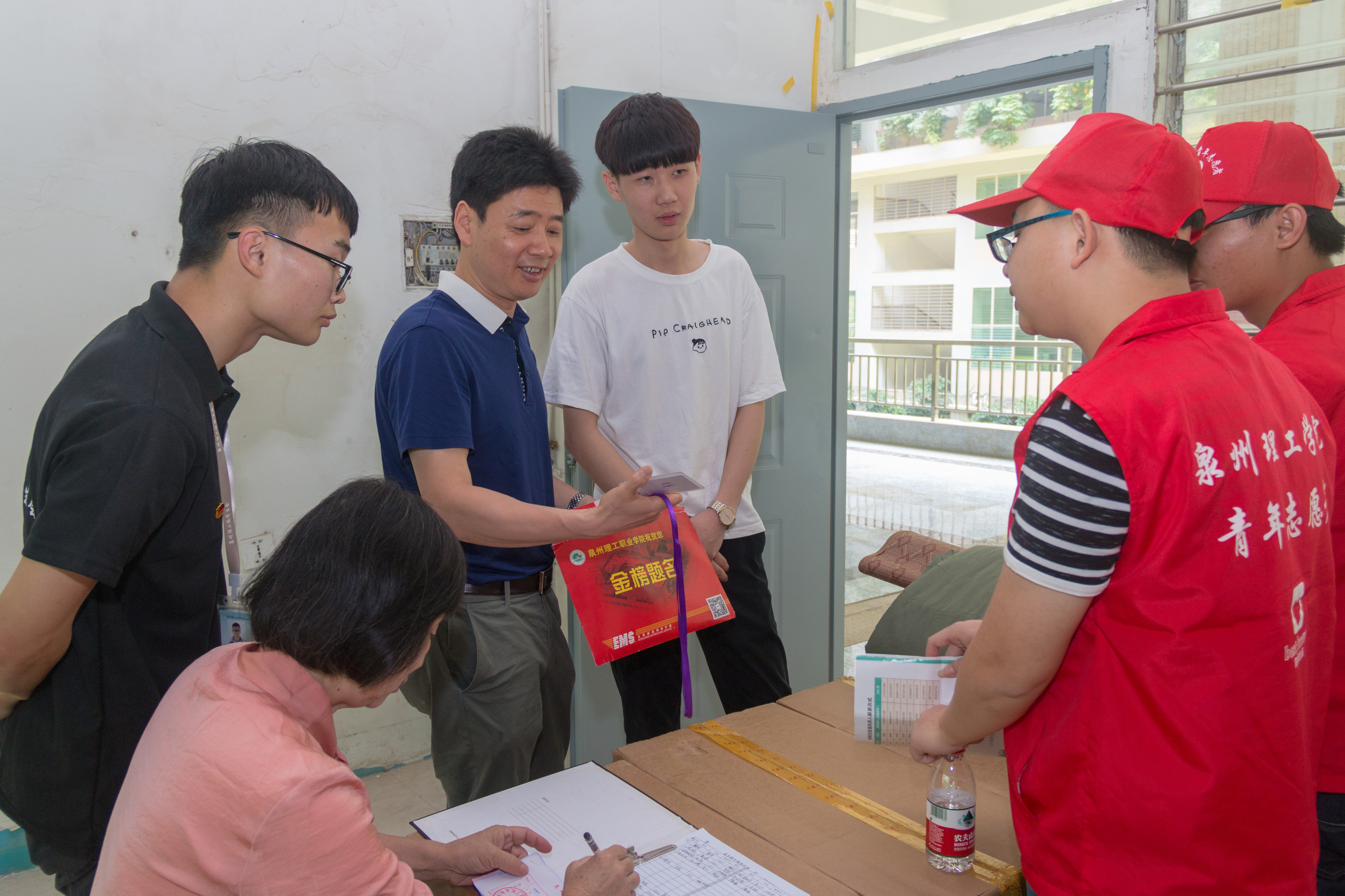 早上8:00,校车缓缓驶进泉州理工学院晋江校区东大门,第一批春季新生背着行囊陆续到来了。在学校的“迎新”现场,随处可见迎新的校学生会、社团联合会和志愿者们的身影,他们在忙碌着引导新生登记、缴费、领取校园卡等。各个排长龙的迎新窗口前都有志愿者引领陪同,耐心帮助新生解决各种问题,使新生得以简捷地办理好各项入学手续。在办理完手续后,还热情地向他们介绍学校的特色、参观校园。学长学姐的热情,令新生们感到很亲切。