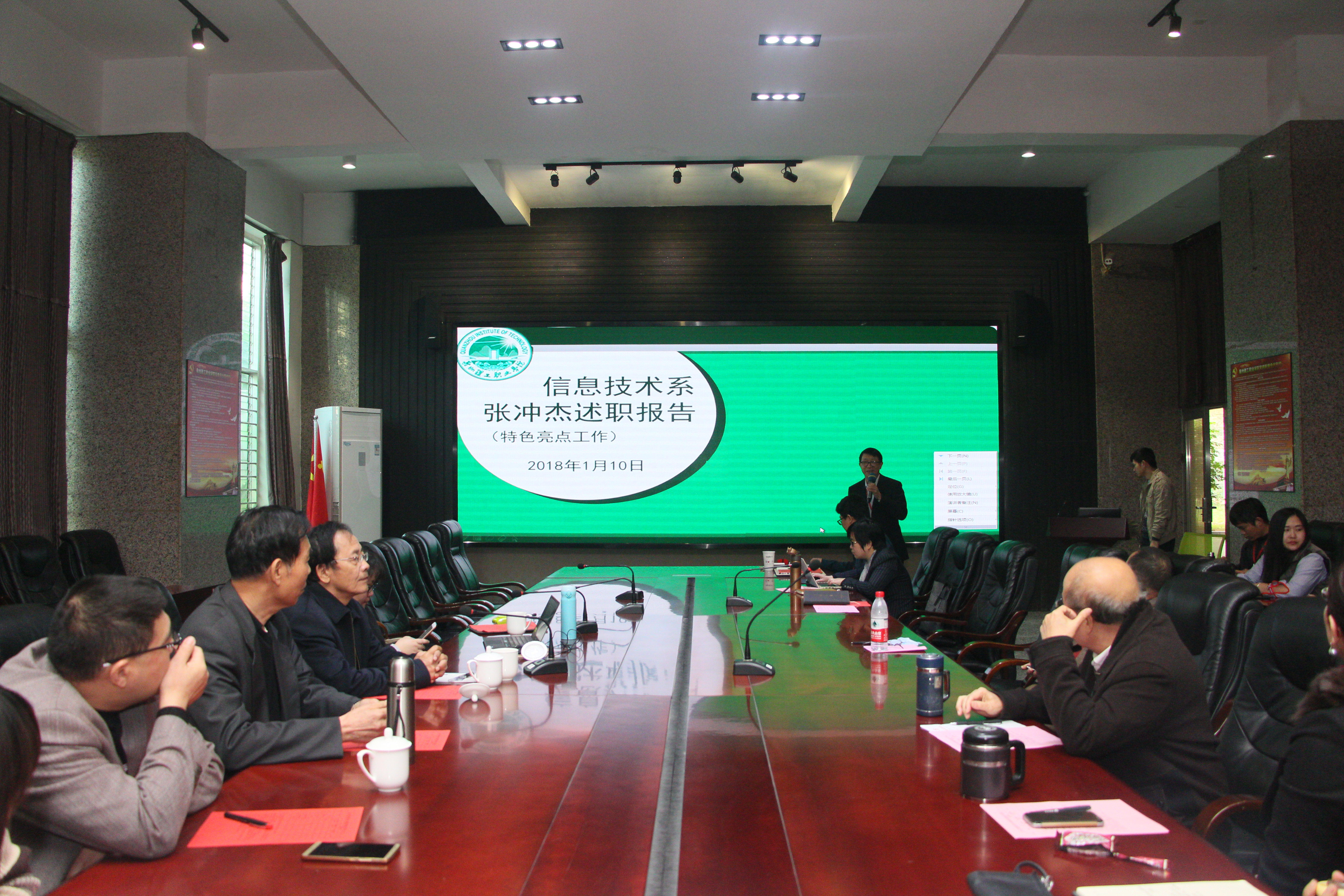 信息技术系从升本质量工程建设、毕业设计改革创新、教研科研比翼双飞、活力创新团学管理四大要点进行报告。2017年教科研课题(成果)9项,专业教师论文发表8项,教学资源库建设和教材编写情况9项,专利、软件著作权登记5项。2018年工作要点有升本质量协同创新举一反三,校企合作协同创新全面展开,教研科研协同创新群策群力等。
