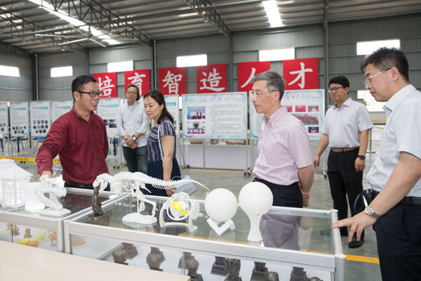 当日下午3时许,我校校长臧树良、书记林其天等领导热情接待了鲁嘉华副校长一行,陪同他们参观了校史馆、数字媒体工程中心、汽车实验室、智能制造工程中心、络缇时尚学院、卫生用品学院等。