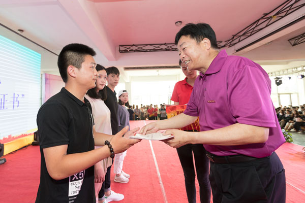 名誉校长苏志明为“国家奖学金”获奖者颁奖
